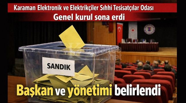 Karaman Elektronik ve Elektrikçiler Sıhhi Tesisatçılar Odası Olağan Genel Kurulu bugün Pirireis Kültür Merkezi'nde gerçekleştirildi. Yoğun katılımın olduğu genel kurulda oda başkanlığı için üç aday yarıştı.
