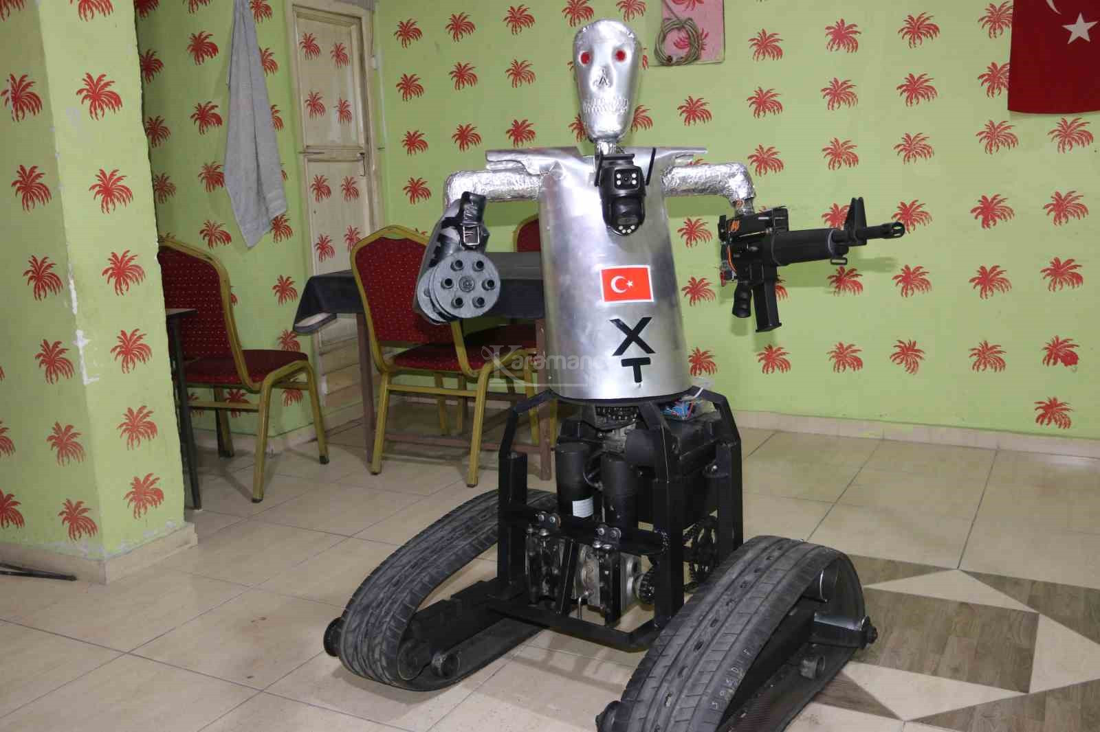 Robotuna "TX" ismini veren 50 yaşındaki Canpolat, gece görüşlü ve ısıya duyarlı kameralar ile robotun her nesneyi algılayabildiğini belirtti. Canpolat, "Bu projemizde bir tane silahlı robot yaptık. Robotumuz tamamen yapay zeka destekli olup uzaktan kumandalıdır. Aynı anda 32 kilometre robotun yanında olmadan da robotu kontrol edebiliyorsun. Kameraları sayesinde tablet, bilgisayarla ve aynı anda cep telefonu ile kontrol edebiliyorsun. Robotumuz hareket sensörlüdür. Isıya duyarlıdır. İnsan algılama var, hareket algılama var. Aynı zamanda gece görüşlüdür. Robotumuza bir tane silah taktık" dedi.