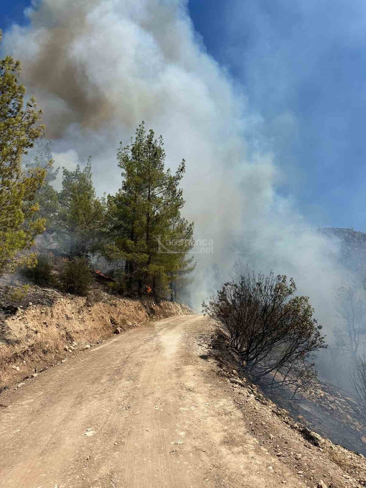 Karadan müdahale edilen orman yangını için bölgeye helikopterde gönderildiği öğrenildi.