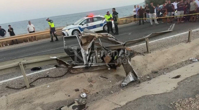 Kaza, akşam saatlerinde D-400 kara yolu Taşucu mevkisinde meydana geldi. Hasan Hüseyin Mavi yönetimindeki 33 VP 831 plakalı otomobil, henüz bilinmeyen nedenle kontrolden çıkıp, refüjdeki çelik bariyerlere çarparak ikiye bölündü.