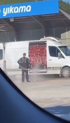 Görüntülerdeki benzin istasyonunun güvenlik kamera kayıtlarından sucukların yıkandığı 16 AEV 265 plakalı kamyonetin sahibi İ.Y.'ye (48) ulaşıldı.