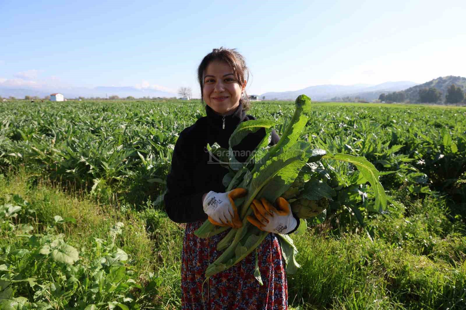 Ailesine ait tarlada enginar üreticiliği yapan Aydın'ın en genç girişimci ve üretici kadınlarından Özge Yüksel, "Sezona bu yıl biraz erken başladık. Havalar geçen seneye göre daha ılık geçti, soğuklar uzun sürmedi. Enginarlarımız 'iyi tarım' sertifikalı. Diğer yetiştirilen enginarlardan farlı. İçerisinde herhangi bir hormon yok.