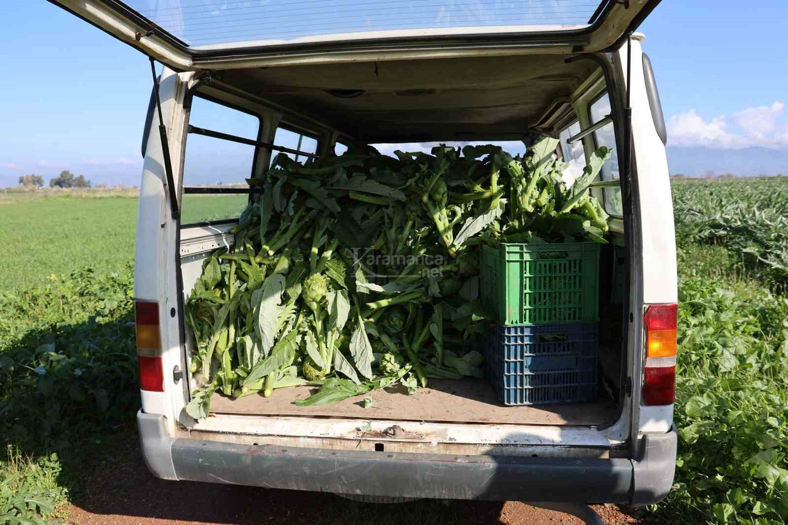 Hasat süreci içerisine giren üreticiler sabahın erken saatlerinde tarlalara inerek enginarlarını hasat ederek aracılara teslim ediyor. Tarlada toptan adet satış fiyatı 20 TL olan enginar, diğer tüm meyve ve sebzelerde olduğu gibi aracı sayısı arttıkça üretici ile tüketici arasındaki fiyat farkı da artıyor. Adet fiyatı tarlada 20, pazarda 40-50 TL'den satılan enginar, lokanta ve restoranlarda ise müşteriye 400 TL'ye ulaşan fiyatla servis ediliyor.