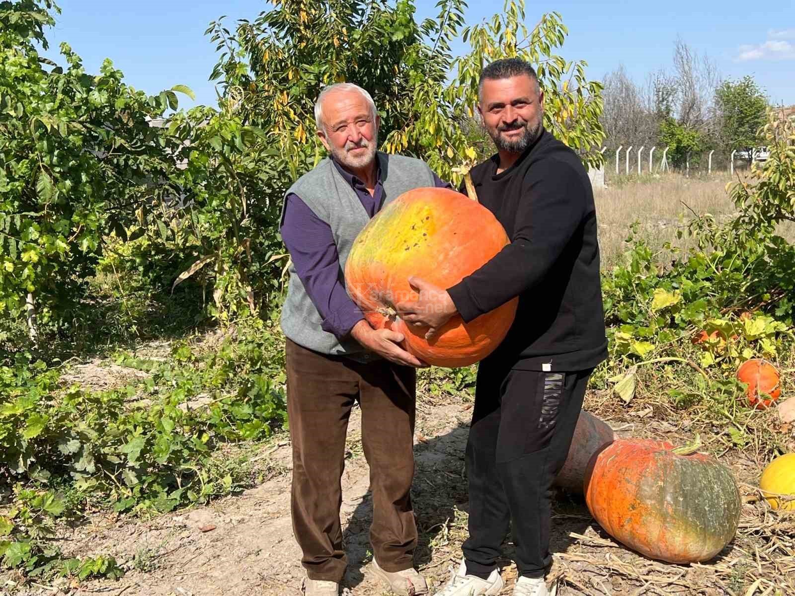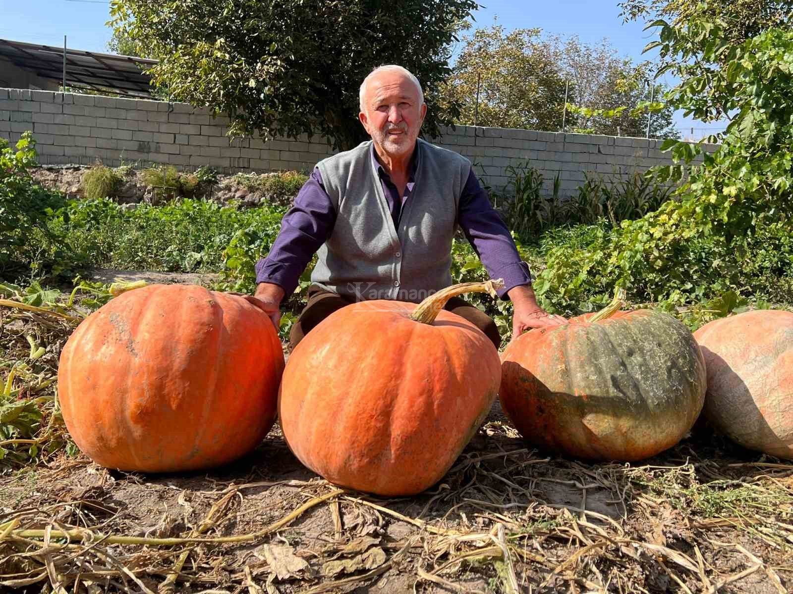 "5O yıldır her sene kabak ekeriz. Çünkü bal kabağının kışın tatlısı çok güzel olur. Bu tohumdan ilk defa denk geldi ve böyle ilk defa büyüdü. seneye de ekmeye devam edeceğiz. Her sene diğer tohumlardan ekiyordum. Onlardan da 20-25 adet oluyordu. Eş dost geliyor, onlara da veriyoruz. Kabağı ekme amacım ticari değil. Ama ektiğimiz bal kabağından 4 tanesi bu yıl haddinden fazla büyüdü. Aslında bal kabakları daha fazla büyürdü fakat biraz tadını alması için suyunu erken kestik" şeklinde konuştu.