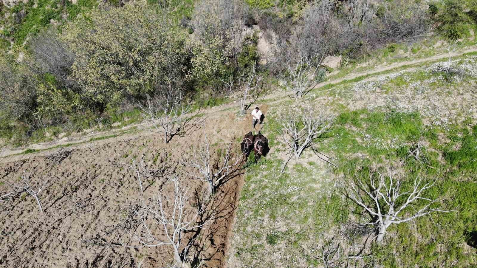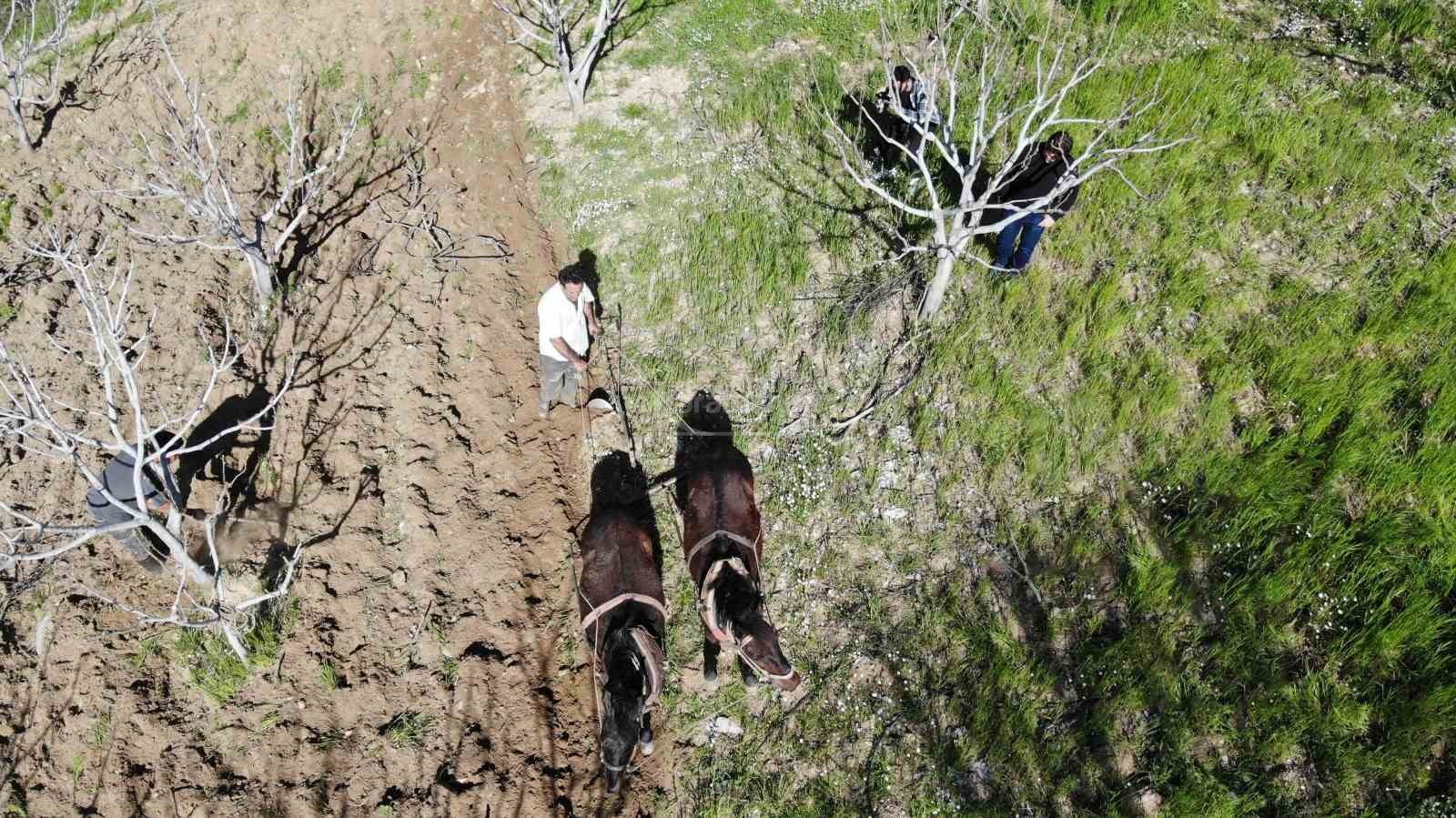 Aydın'ın yamaç ve engebeli dağlık alanlarında bulunan zeytin ve incir bahçelerinde çiftçiler arazilerini asırlık gelenekle işliyor. Teknolojiyle birlikte tarımda makineleşmenin arttığı ve 55 binin üzerinde traktöre sahip olan Aydın'ın engebeli ve dağlık arazilerinde çiftçilerin imdadına atlar yetişiyor. Bu yıl yaşanan kuraklık sebebiyle toprak tavını kaybetmeden işleyebilmek için adeta zamanla yarışan çiftçilerin zorlu mesaisi de başladı. Efeler ilçesine bağlı Umurlu Mahallesi'nde dağlık alanlardaki arazilerini karasaban ile işleyen çiftçiler, traktörün iş yapamadığı yerde eski yöntemlerle toprağın verimini arttırmaya çalışıyor.