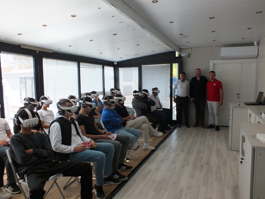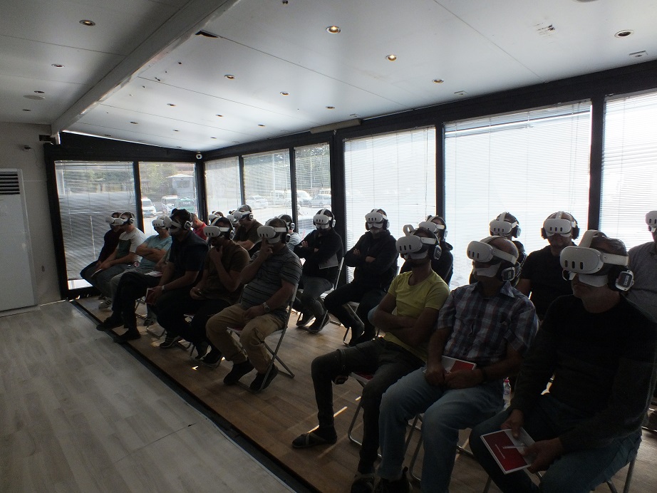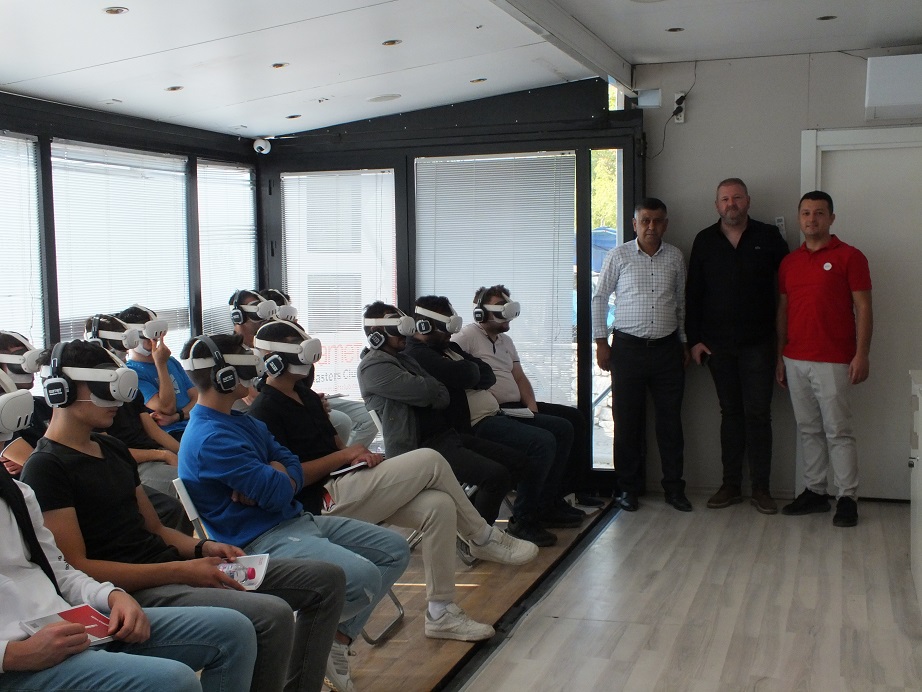 Samet Global firmasına ait fabrikadaki tüm üretim aşamalarını sanal gerçeklik deneyimiyle izleyen ustalar ve çıraklar, bu fırsat için Başkan Koçyiğit’e ve Samet Global’e teşekkürlerini ilettiler.