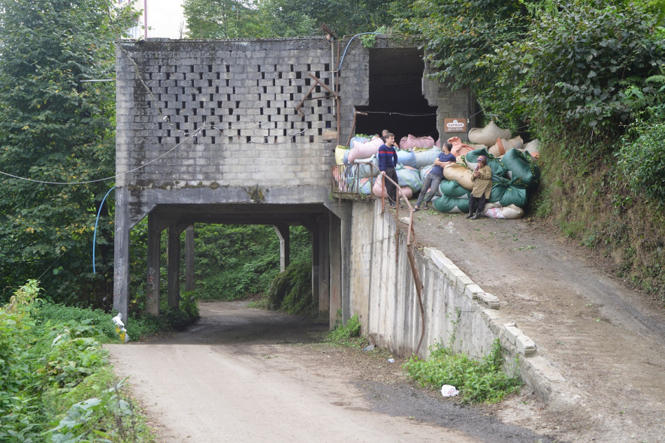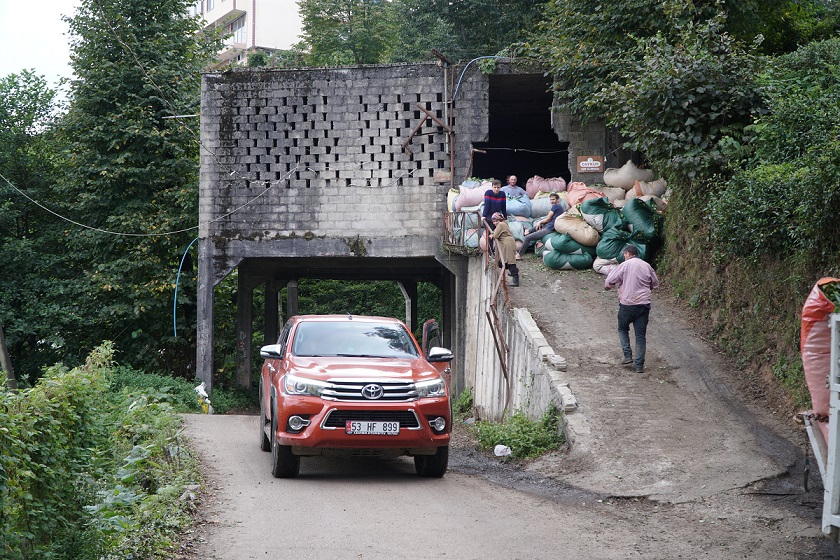 RİZE'nin Pazar ilçesinde arazi yetersizliği nedeniyle çay alım yeri, mahalle yolu üzerine inşa edildi. Yöre halkı, 'tünel alım yeri' olarak tanımladığı yoldan araçlarıyla geçerek köylerine ulaşırken; bir yandan yaş çaylar alım yerinin tabanından yola açılan boşluktan kamyonete boşaltılıyor.
