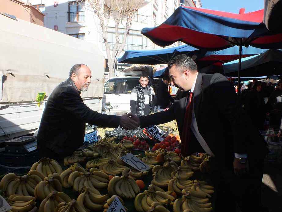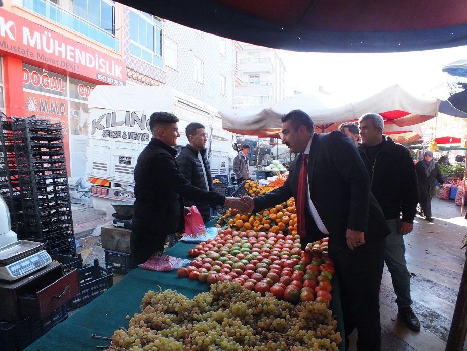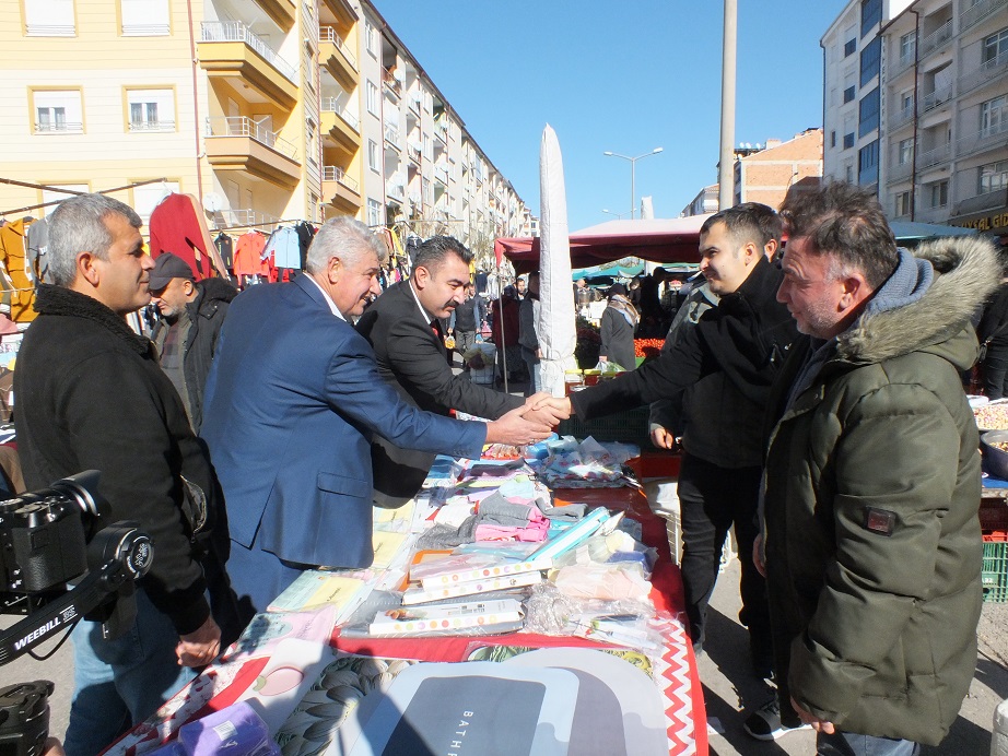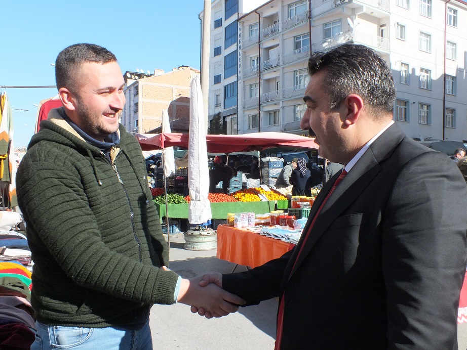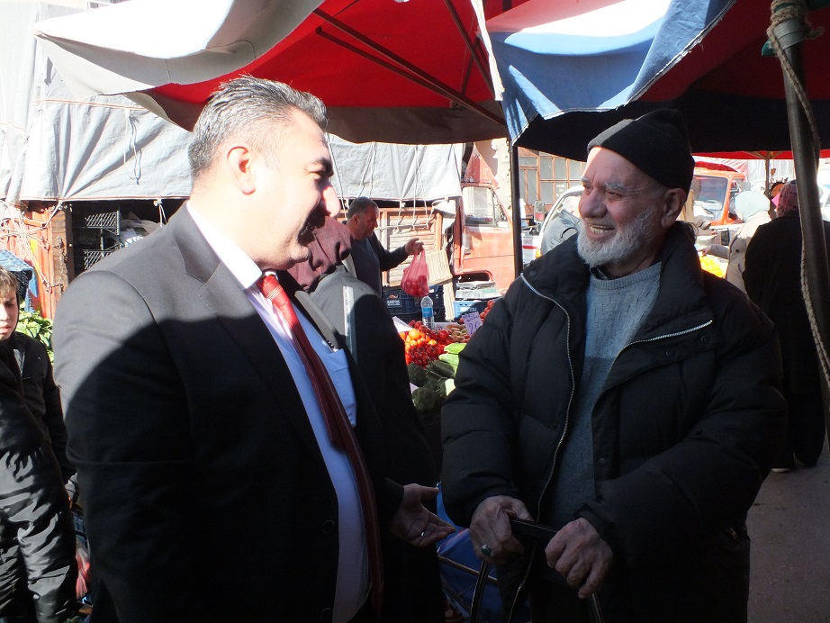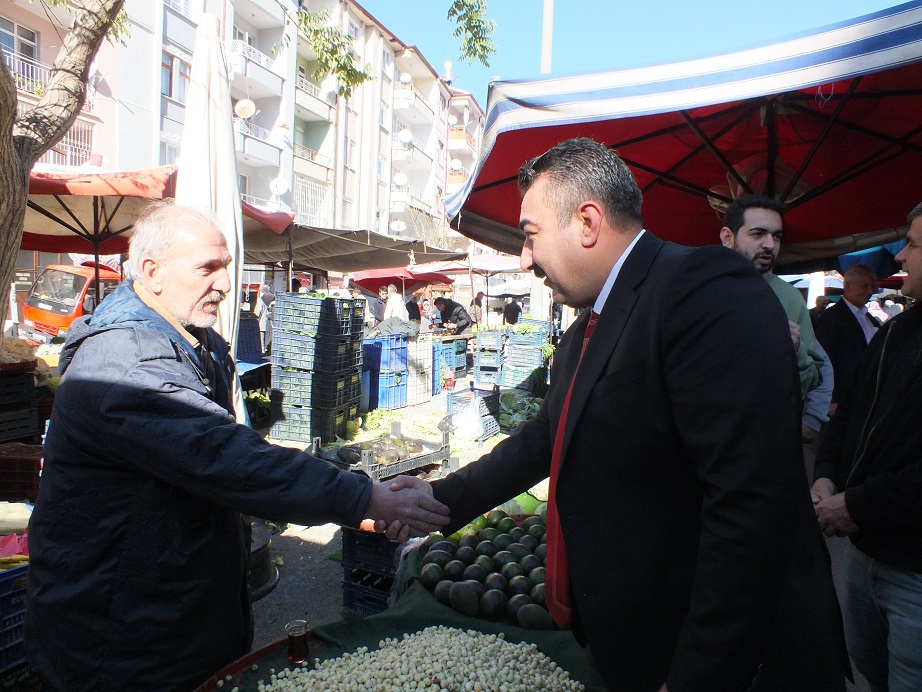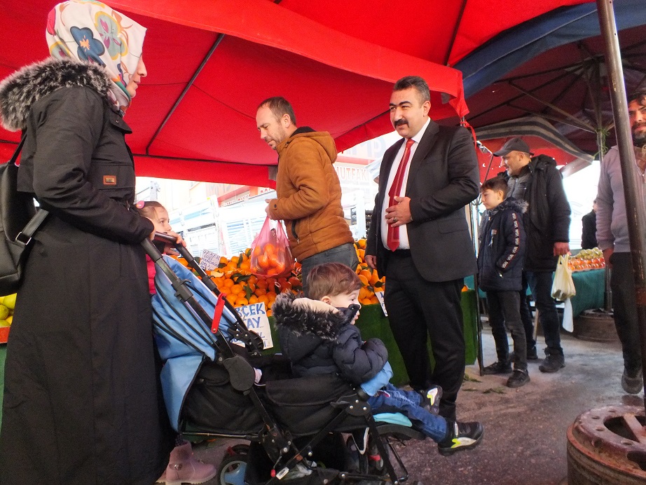 Ülküsever, semt pazarında alış veriş yapan vatandaşlarla da sohbet ederek şehre ve güncel konulara dair görüşlerini aldı.