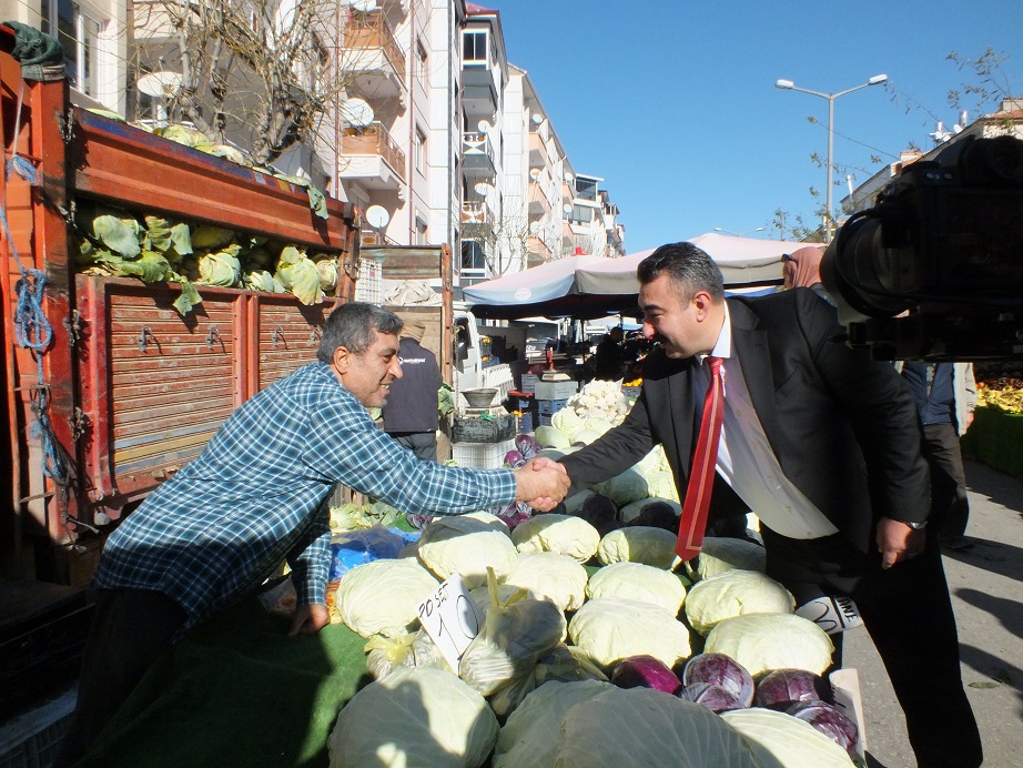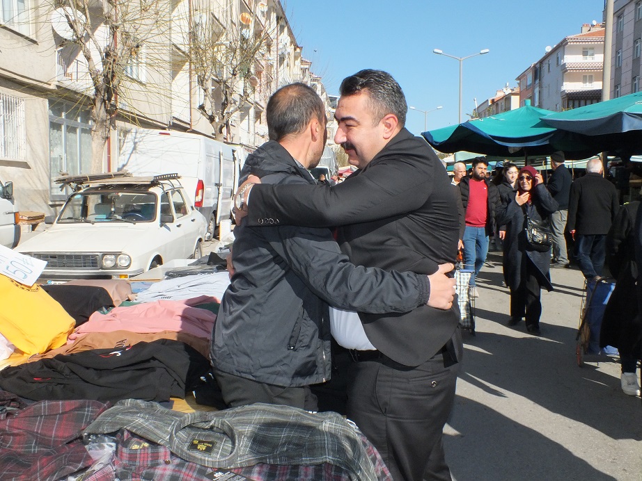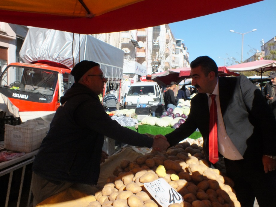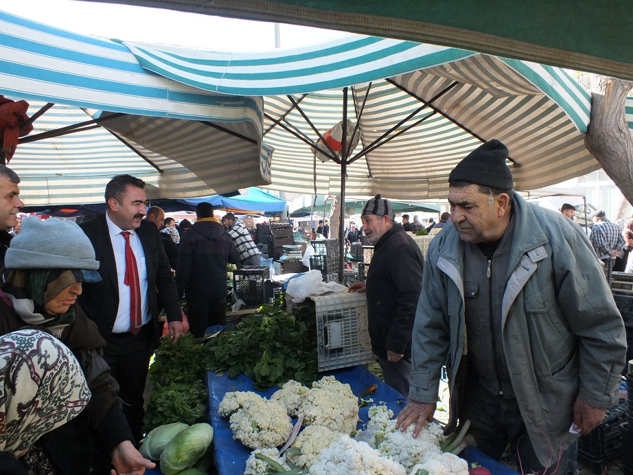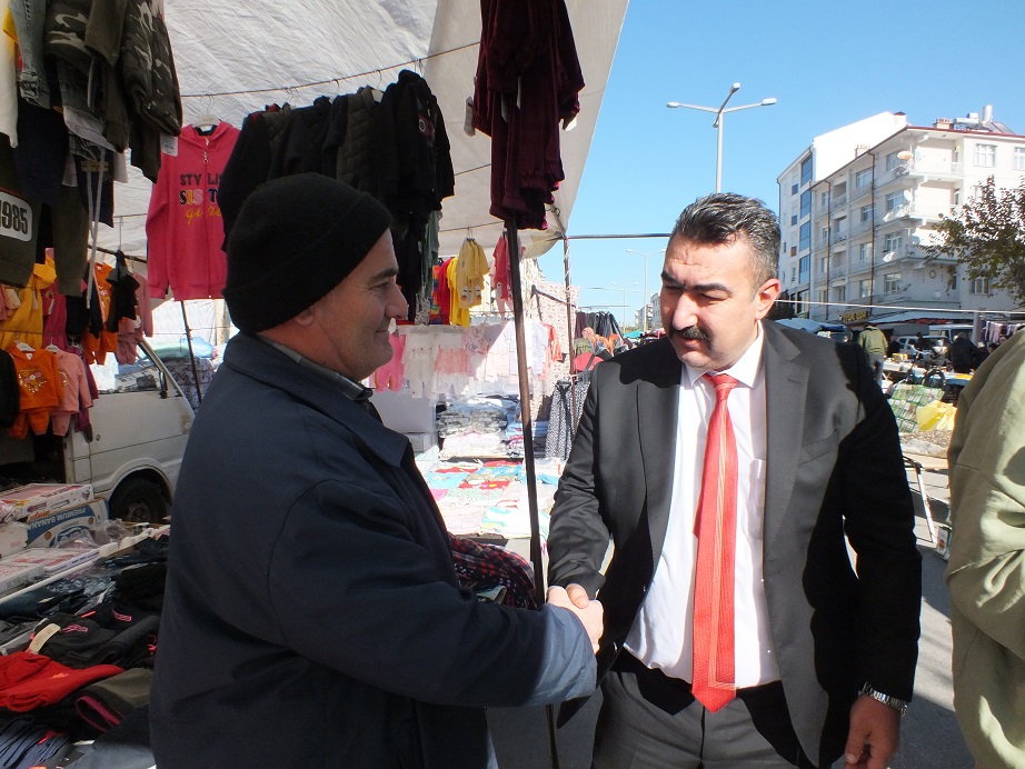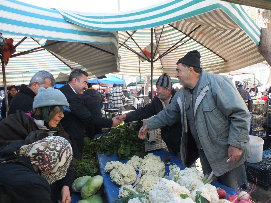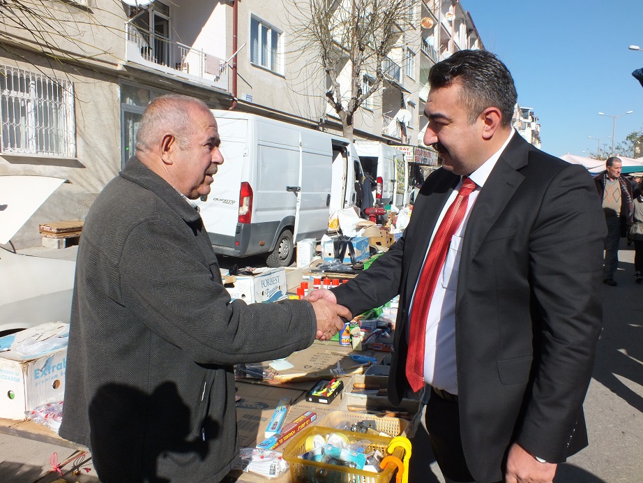 Ülküsever, semt pazarında alış veriş yapan vatandaşlarla da sohbet ederek şehre ve güncel konulara dair görüşlerini aldı.