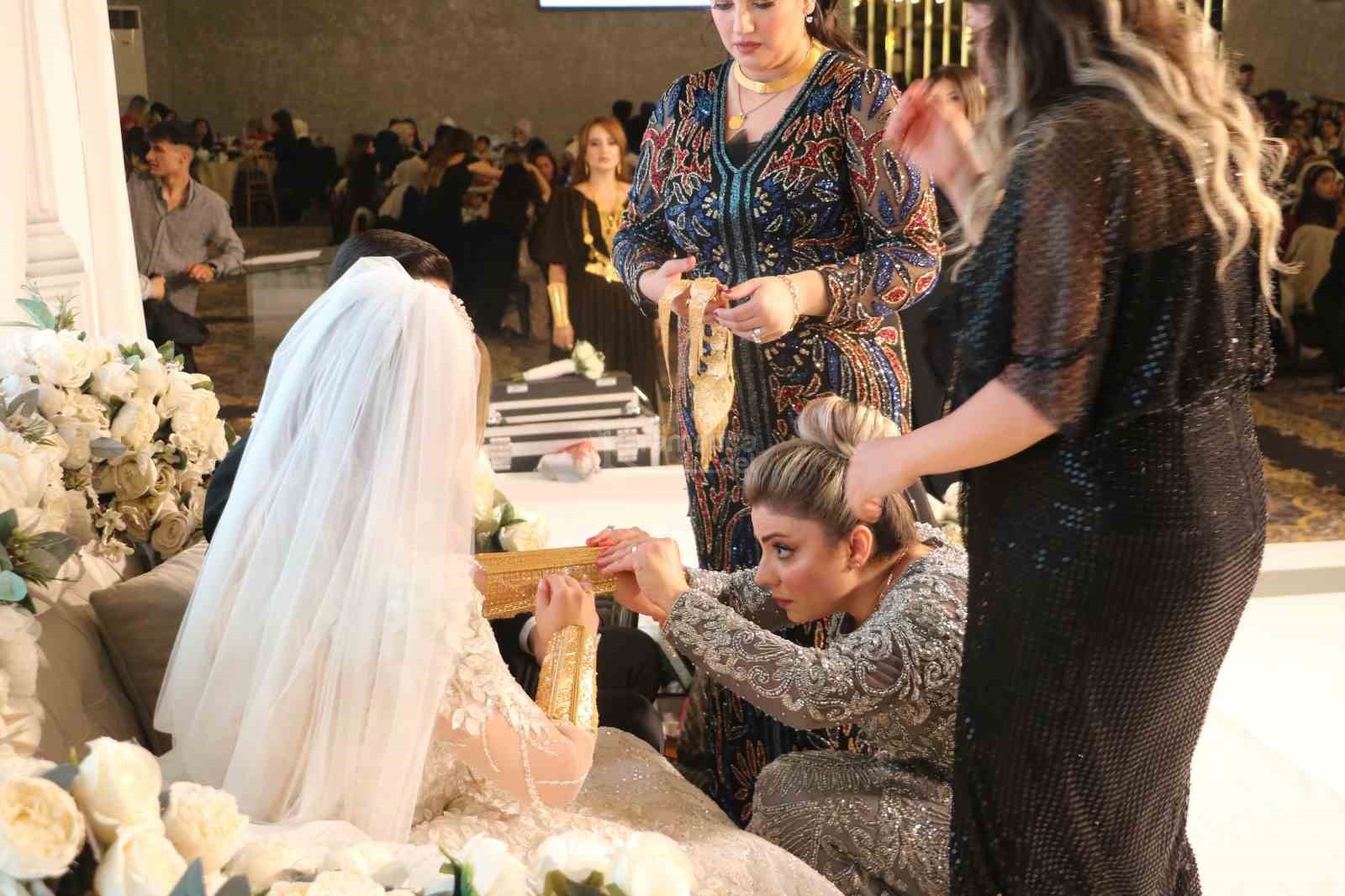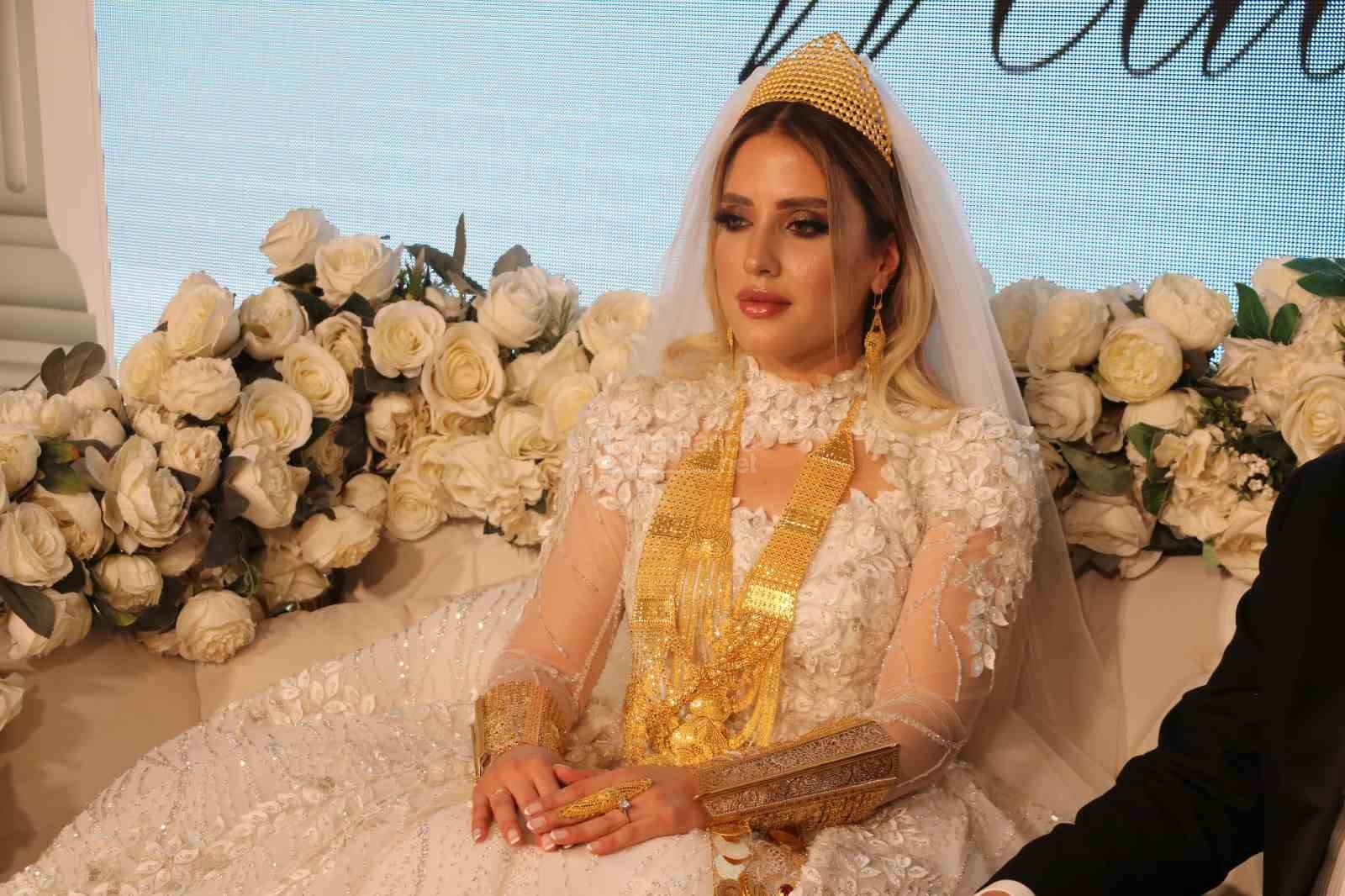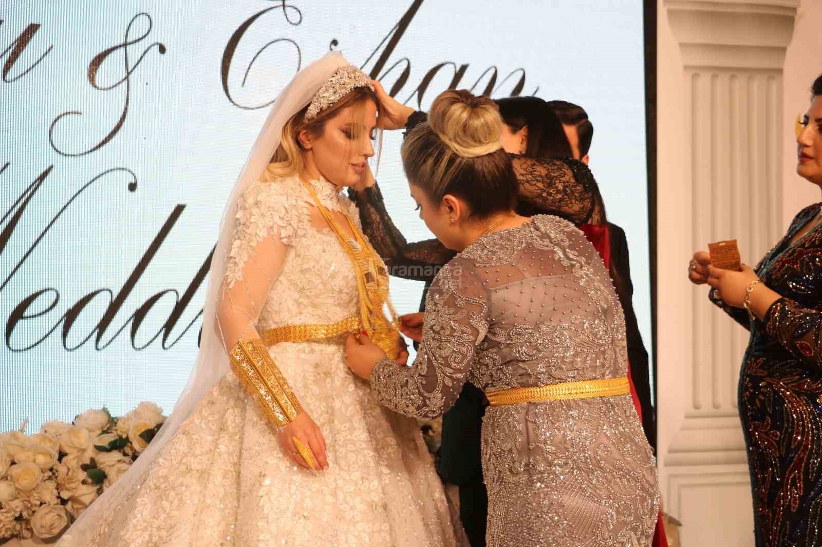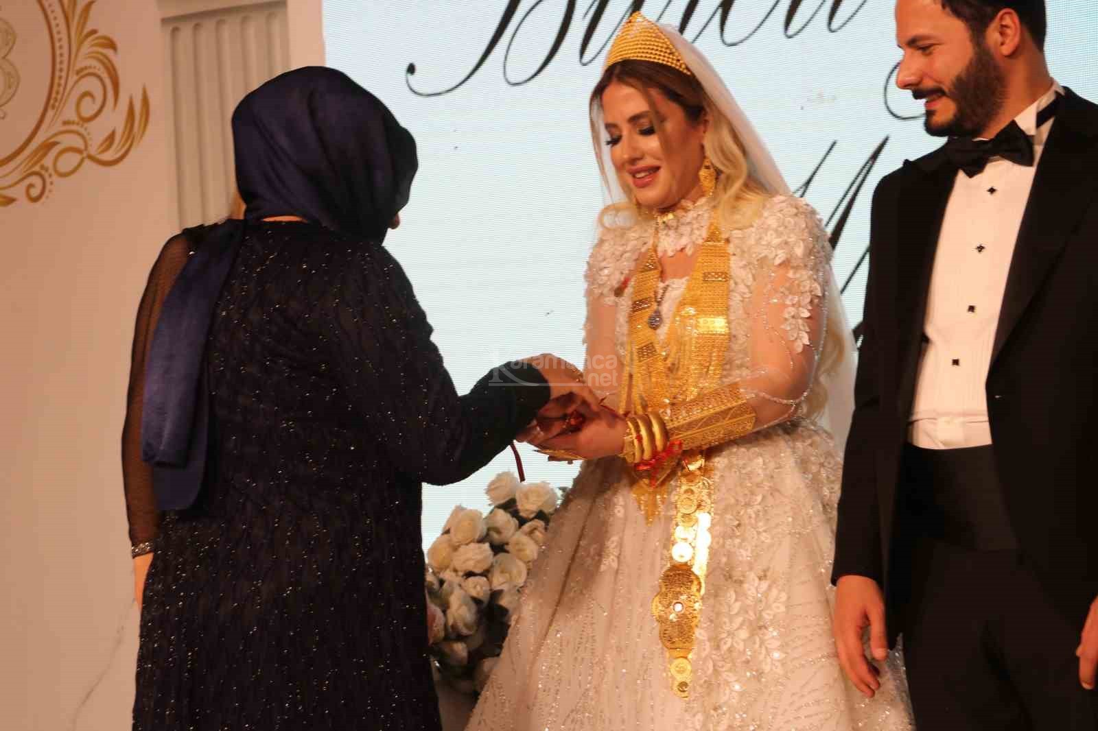 Nikah merasiminin ardından takı töreni başladı. Yaklaşık 1 saat süren takı töreninde geline 8 kilogram ağırlığında bilezik, taç, kemer, gerdanlık, kolye gibi takılar takıldı.