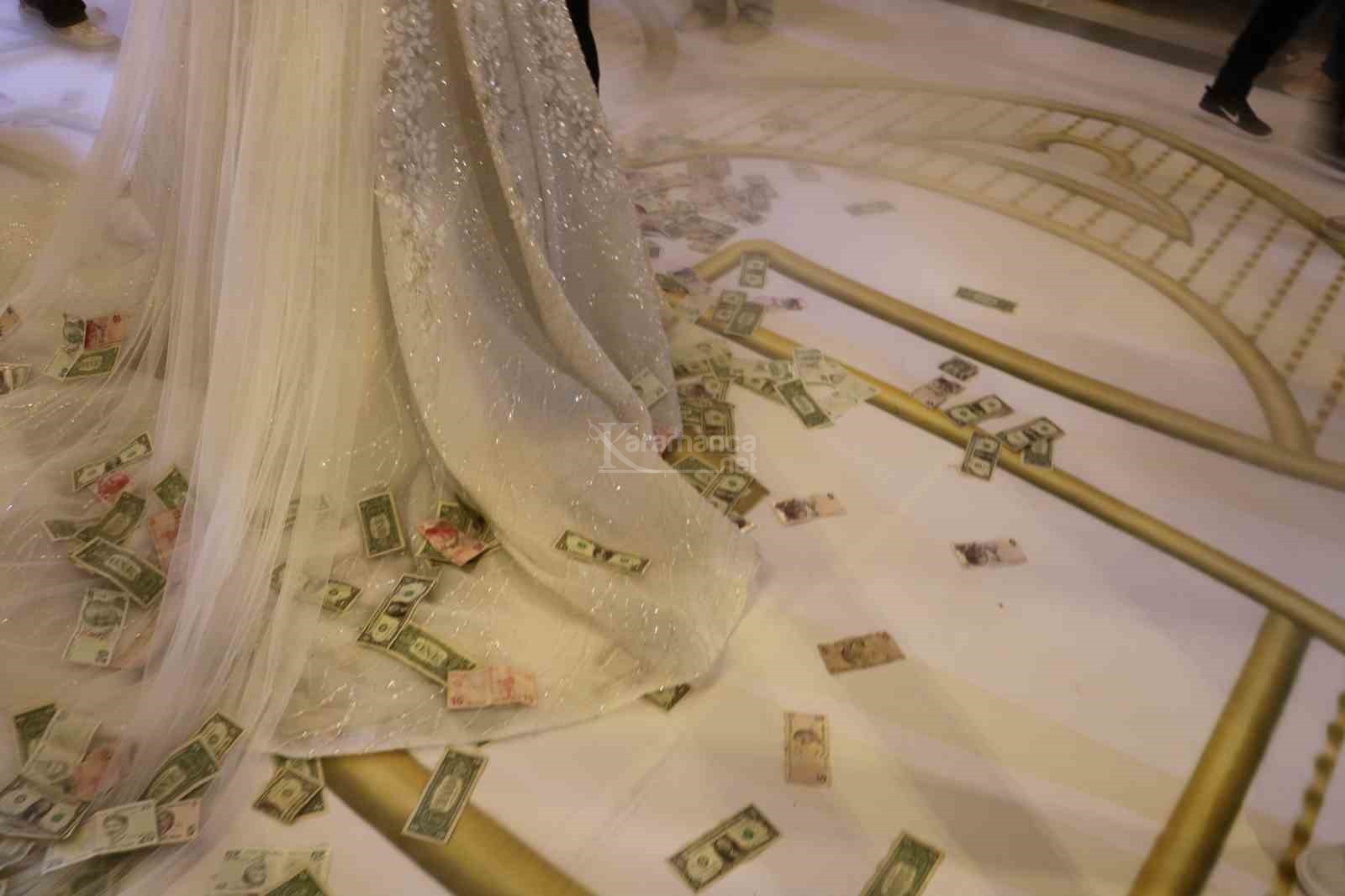 Şarkıcı Ceylan ile yöresel sanatçıların da sahne aldığı düğünde dans eden çiftin ve halay çekenlerin üzerine dolar ve Türk Lirası saçıldı. Deste deste paraların havada uçuştuğu düğünde, görevlendirilen 5 kişi ise yere düşen paraları toplamaya çalıştı. Toplanan paralar çantalara konularak götürüldü.