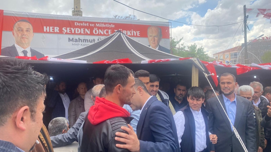 Milliyetçi Hareket Partisi Karaman İl Başkanlığı, seçmen iletişim bürosu olarak kurulan kıl çadırda Karamanlılarla bir araya gelerek bayramlaştı.